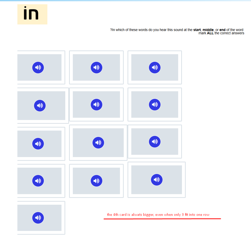 I tried this on 2 H5P servers and i noticed that when creating multimedia choice activity the last card of the in the row is slightly bigger.