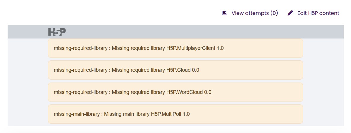 I am struggling to get it to work on my Moodle. I've set the tool up in H5P.com and then downloaded the files via the reuse option. When I try and add the file I get the following error messages. What am I doing wrong?