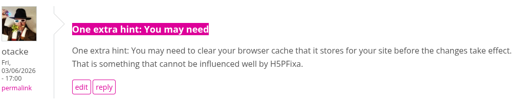 But if you did all of the above, the symptoms must have changed (thinking of messages in the network tab of the developer tools and the PHP error log, cmp. https://snordian.de/2024/02/17/how-can-i-craft-an-effective-bug-report-f...).
