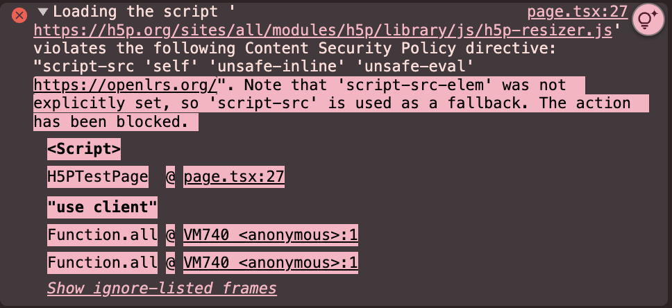 I get the following error where embedding H5P content. I have done nothing new in my Next JS code that is doing the embedding.