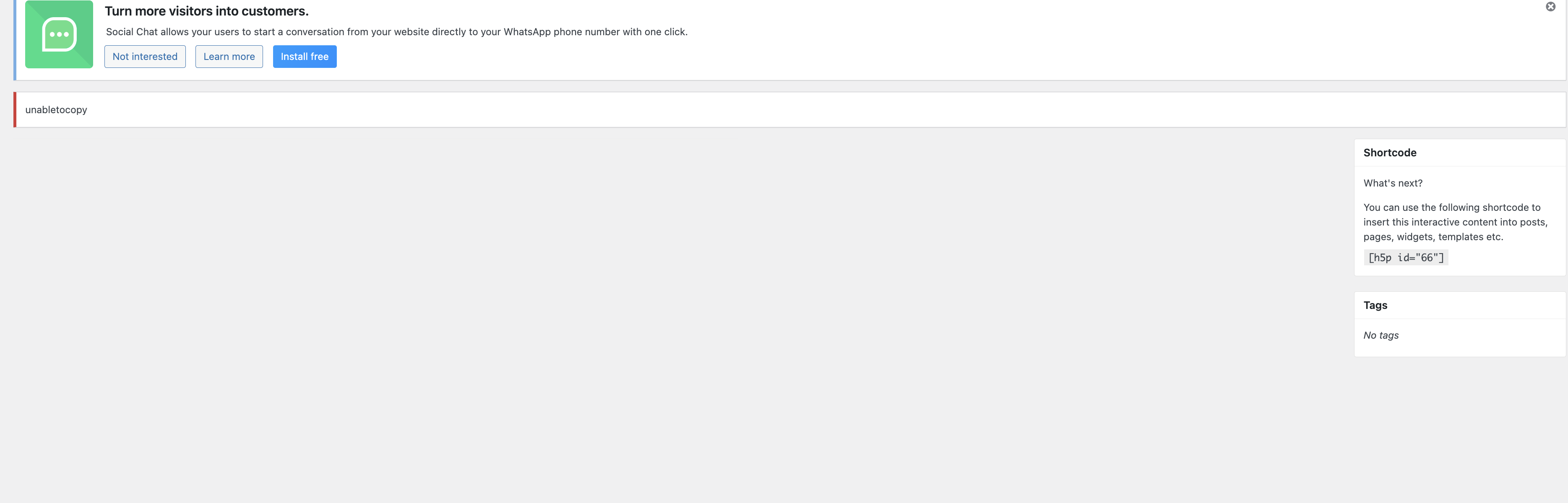 Issue: “unabletocopy” error when saving H5P content in WordPress